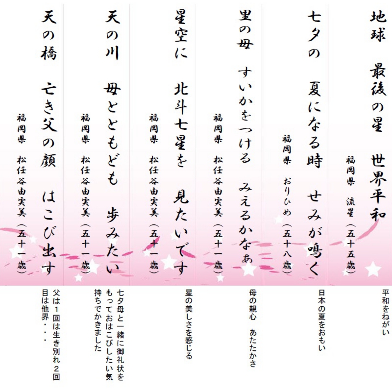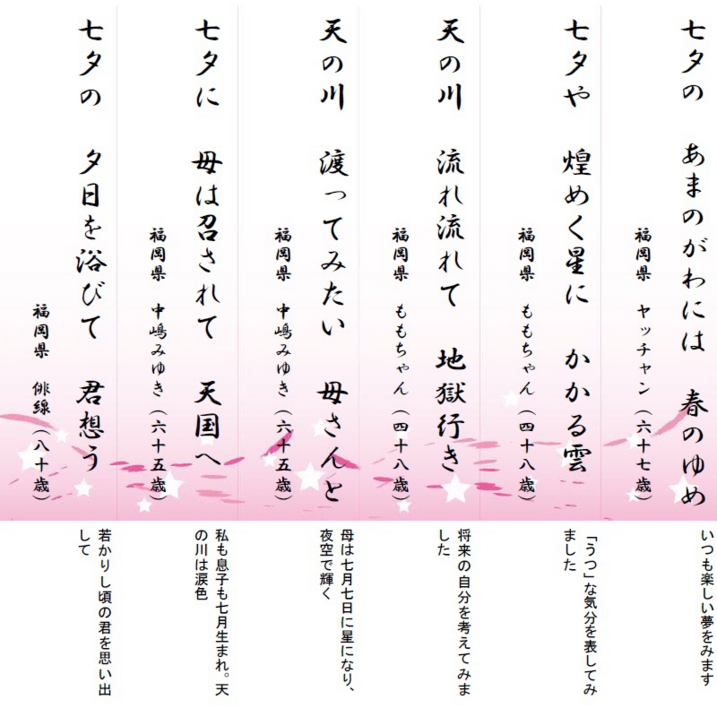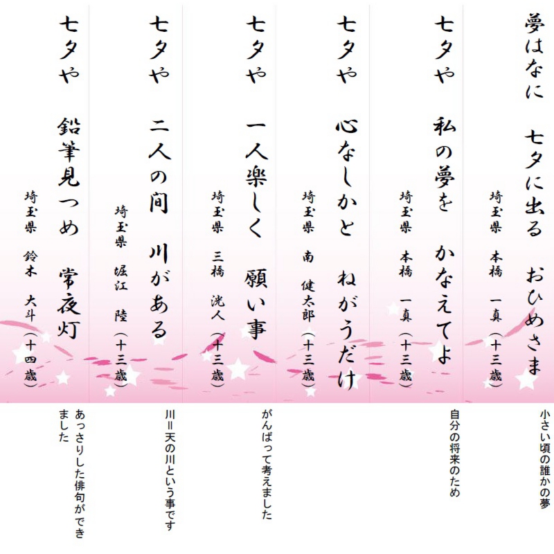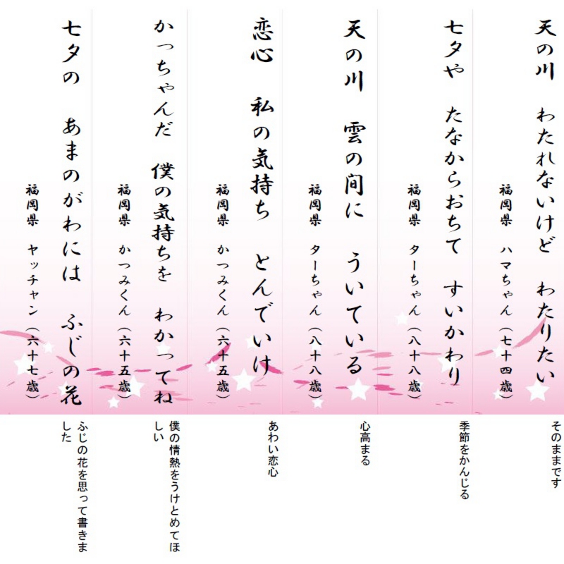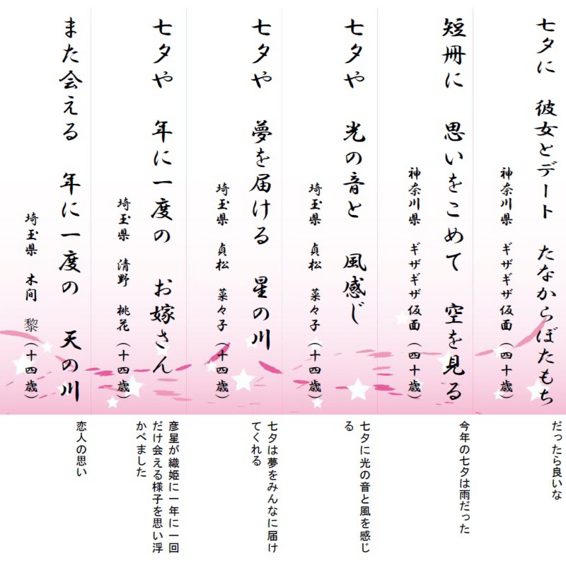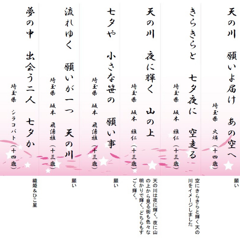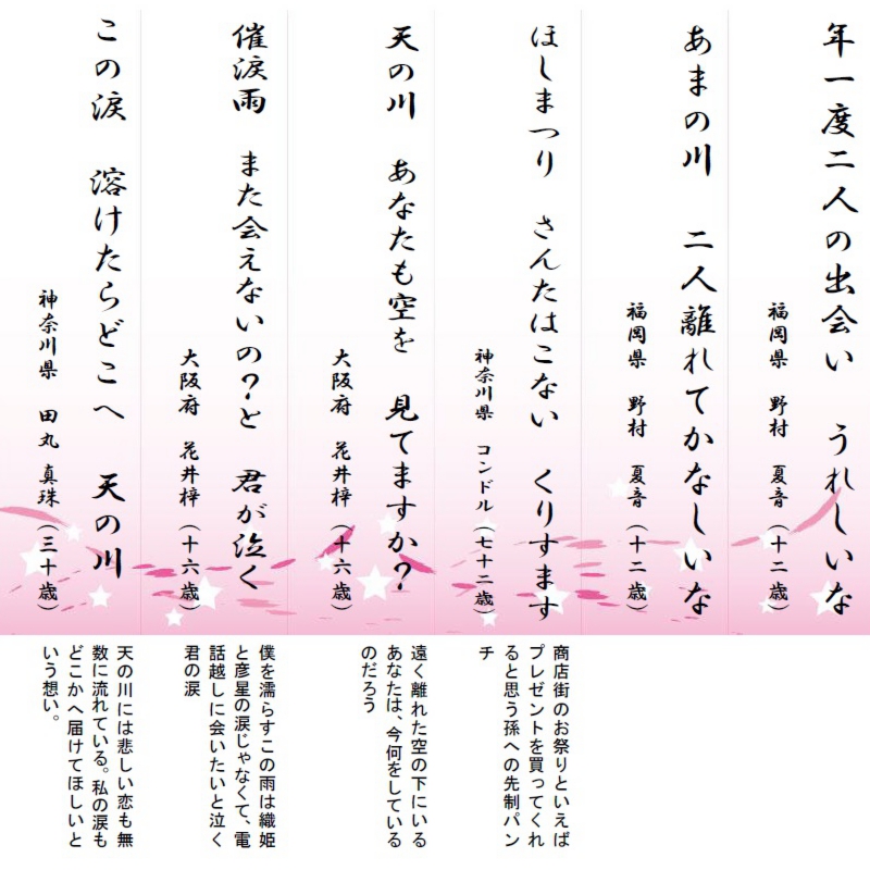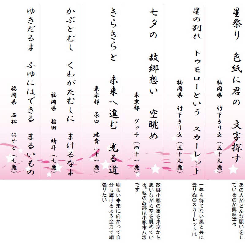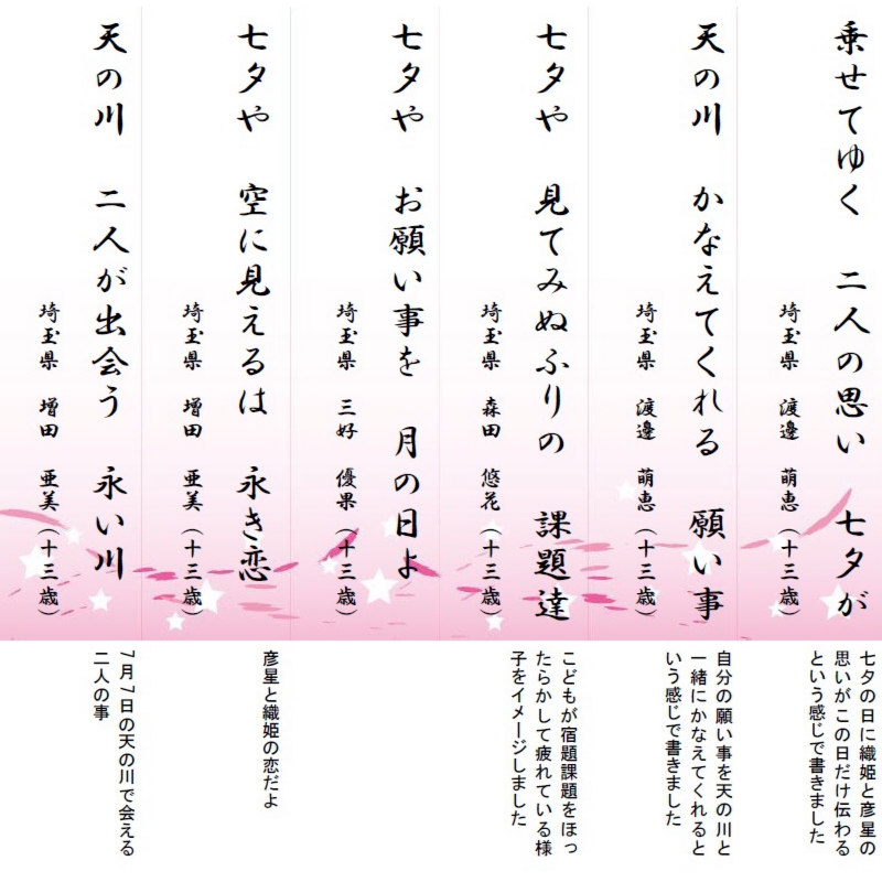 七夕俳句に応募頂いた、俳句をここでご紹介させて頂きます。