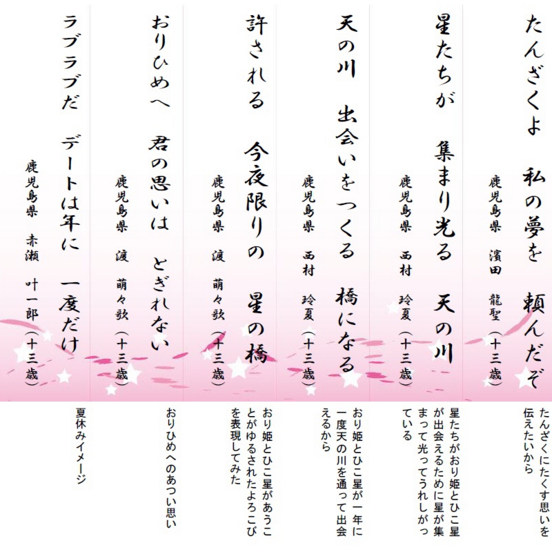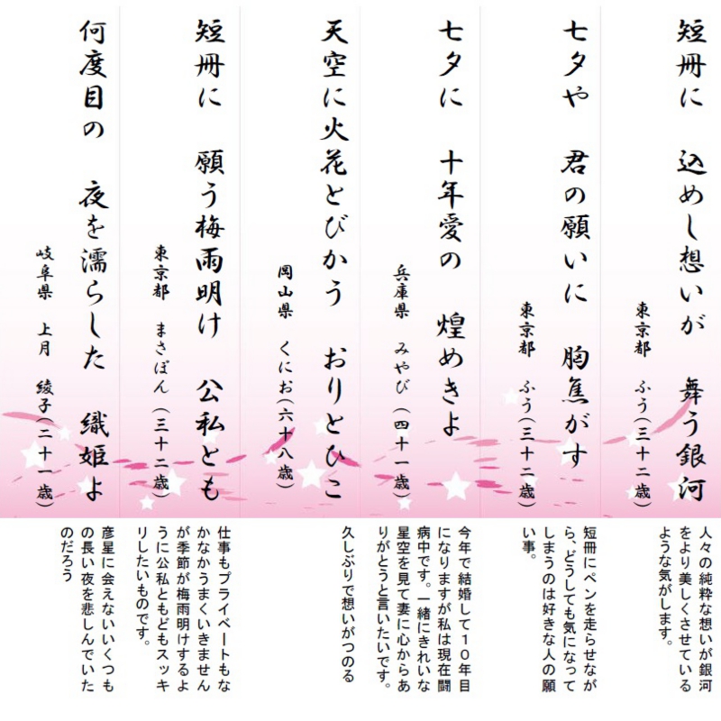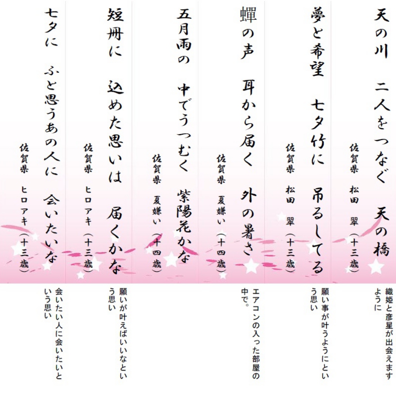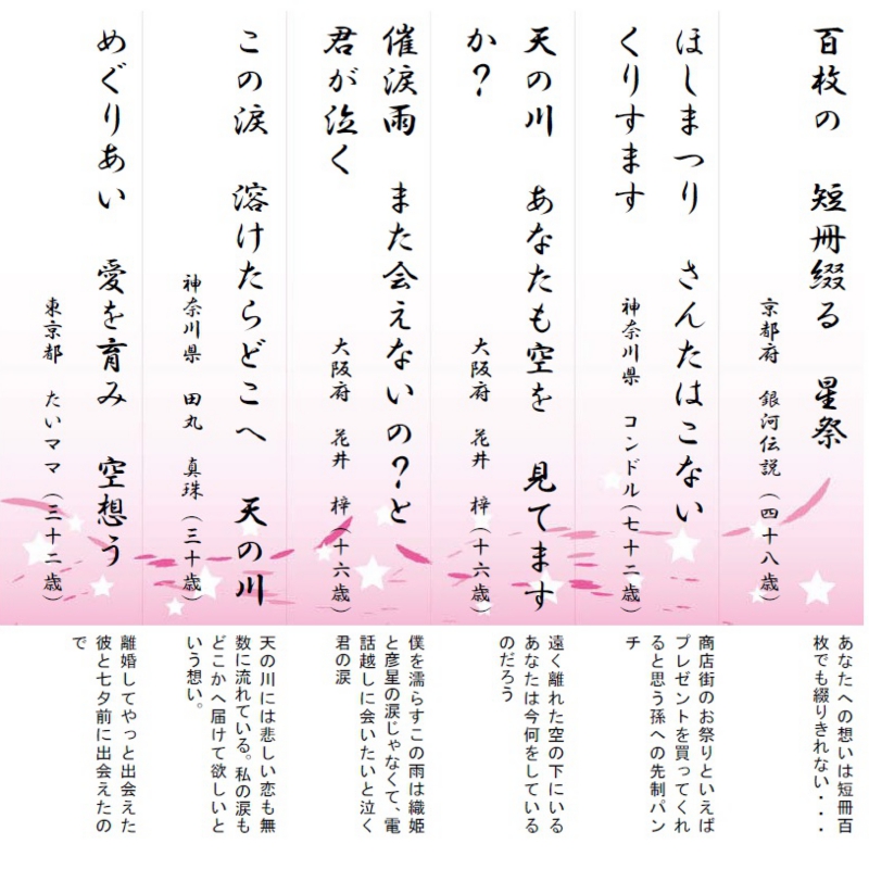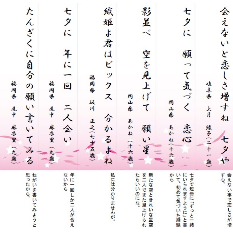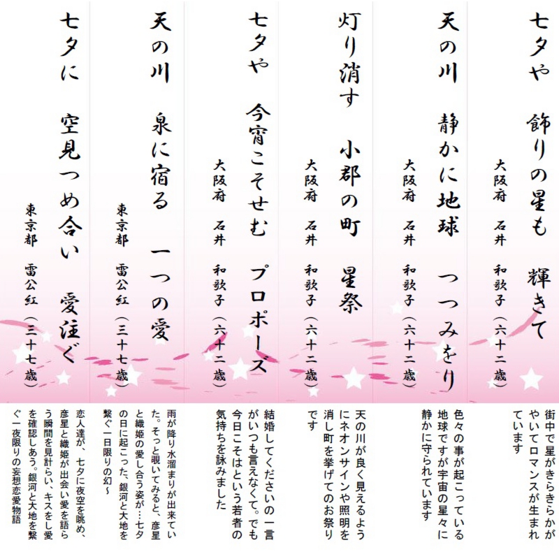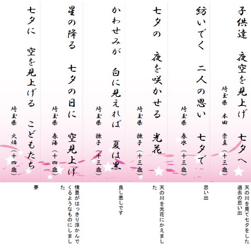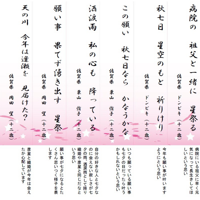 七夕俳句に応募頂いた、俳句をここでご紹介させて頂きます。