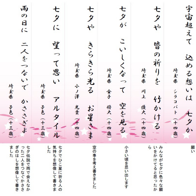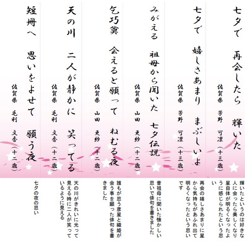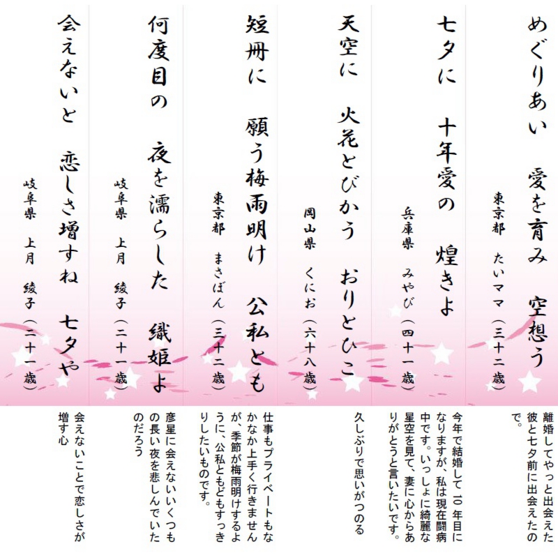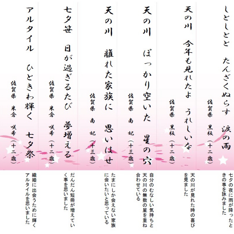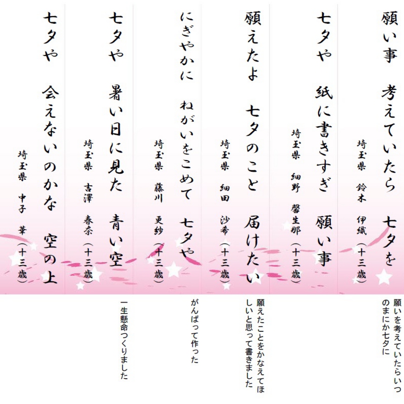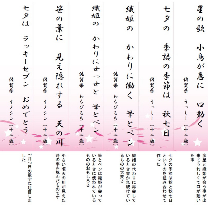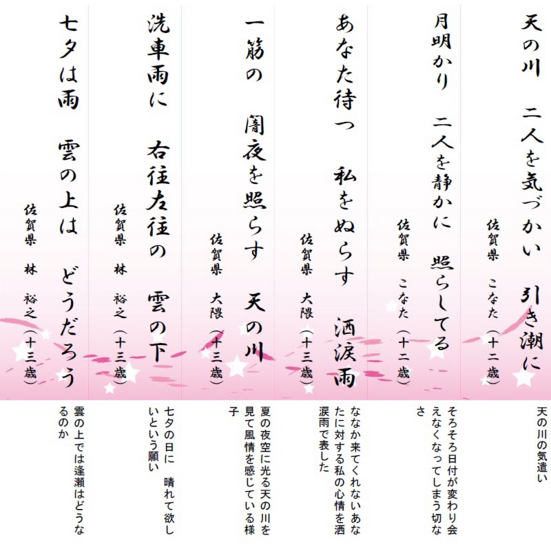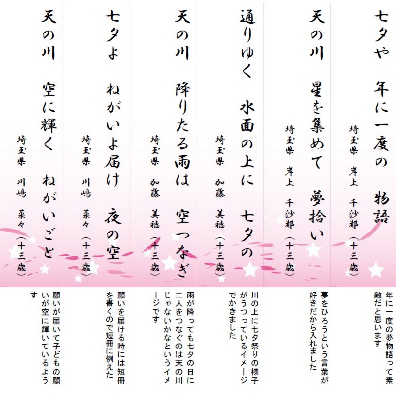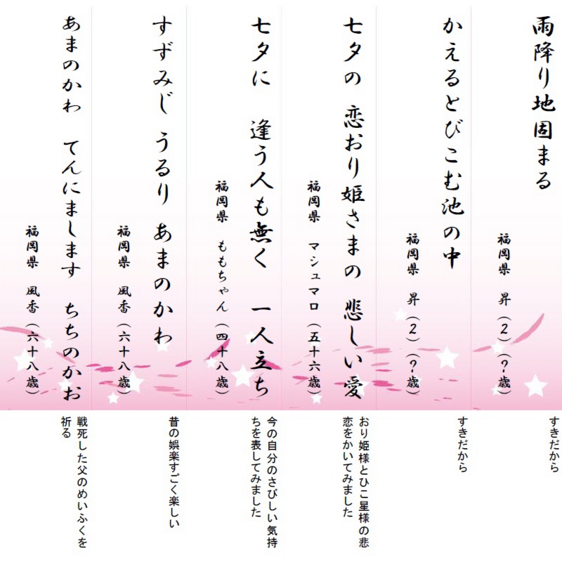 七夕俳句に応募頂いた、俳句をここでご紹介させて頂きます。