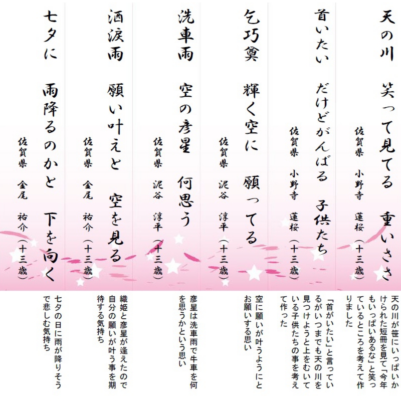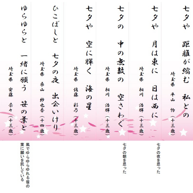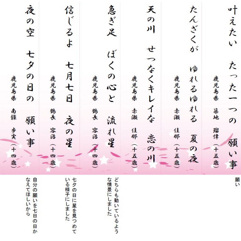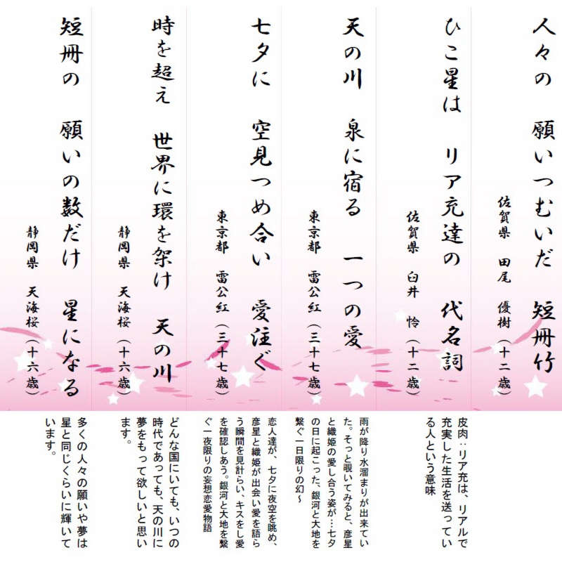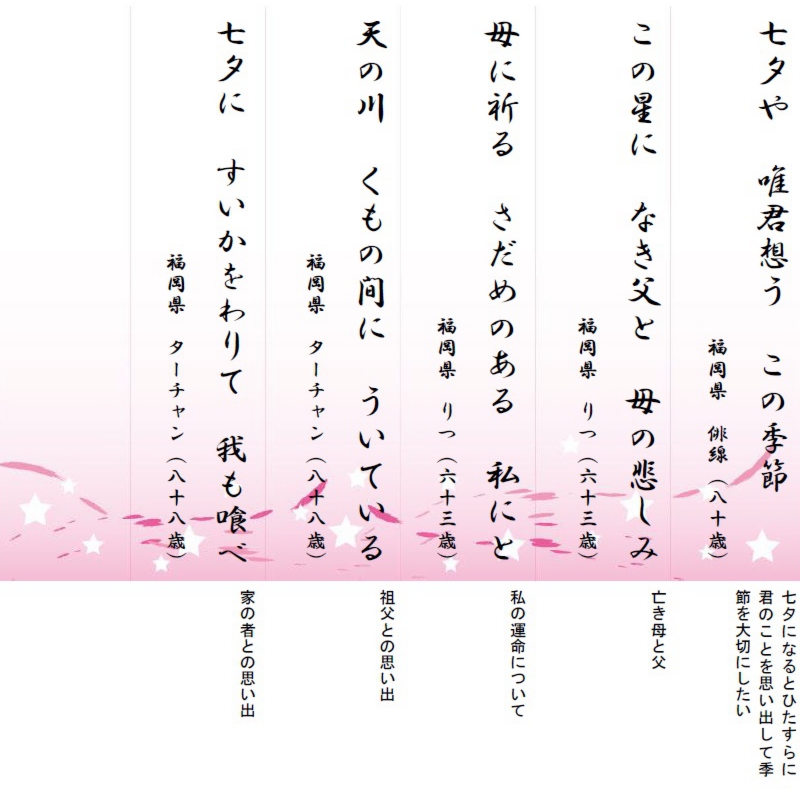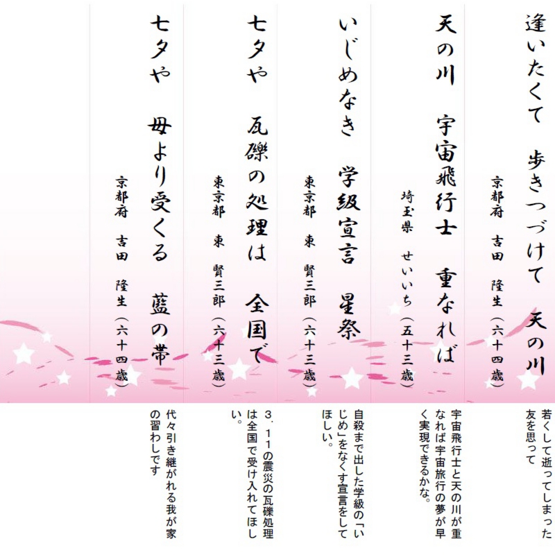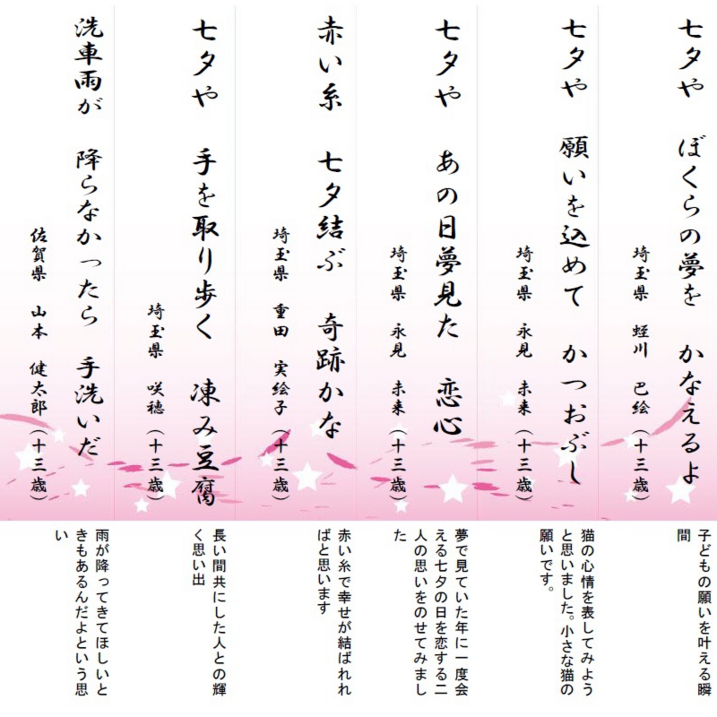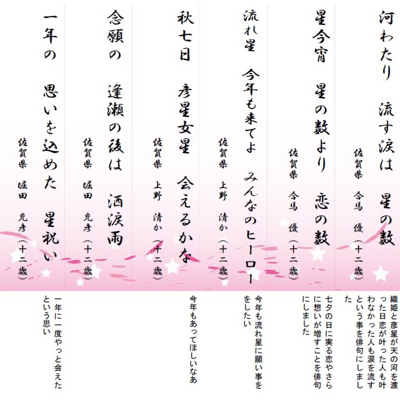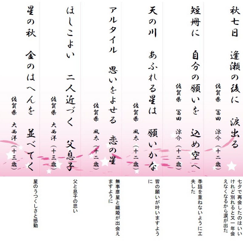 七夕俳句に応募頂いた、俳句をここでご紹介させて頂きます。