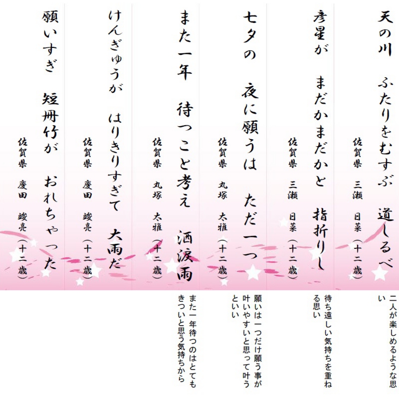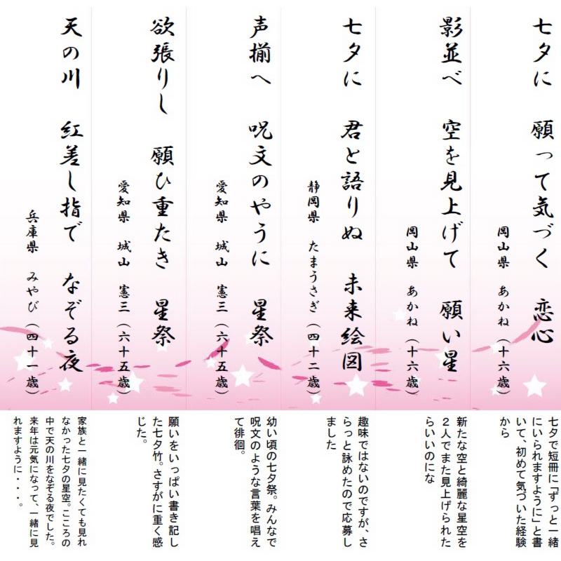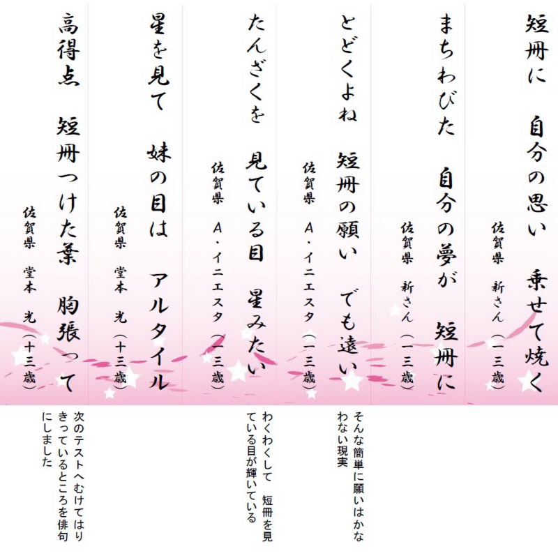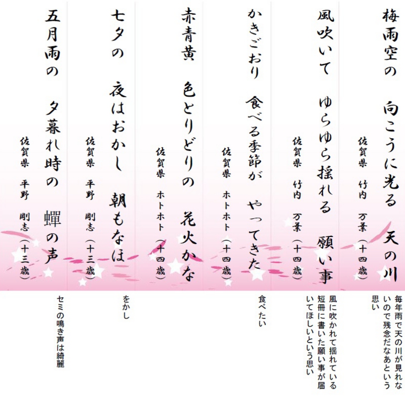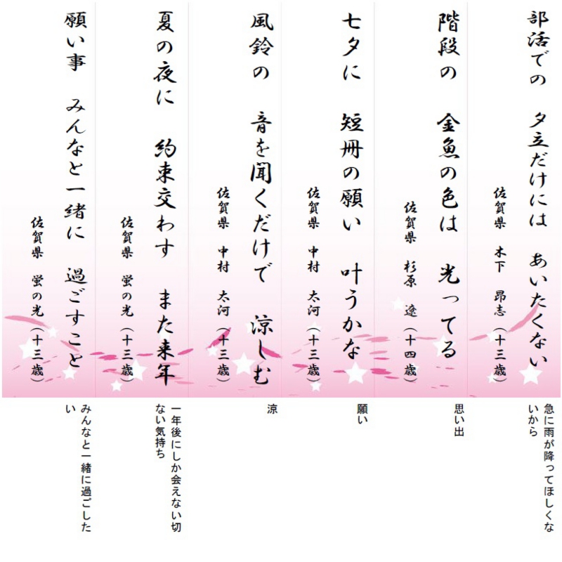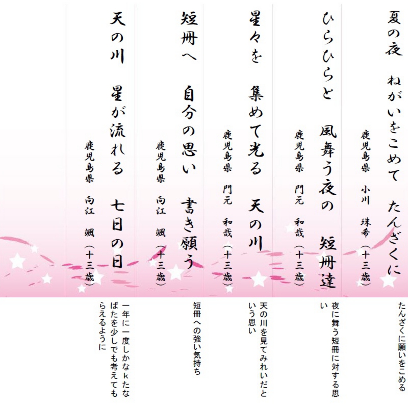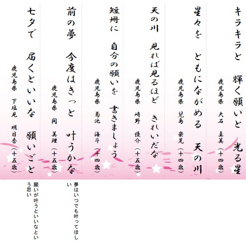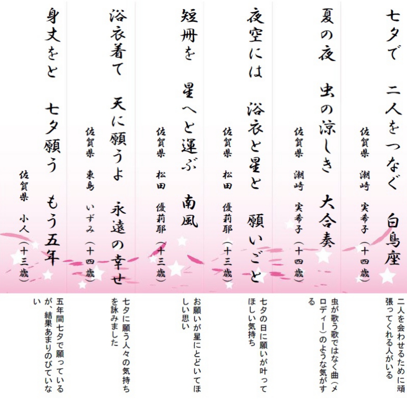 七夕俳句に応募頂いた、俳句をここでご紹介させて頂きます。