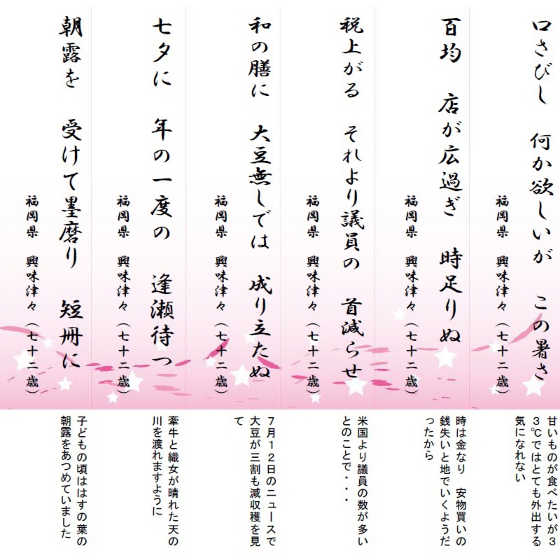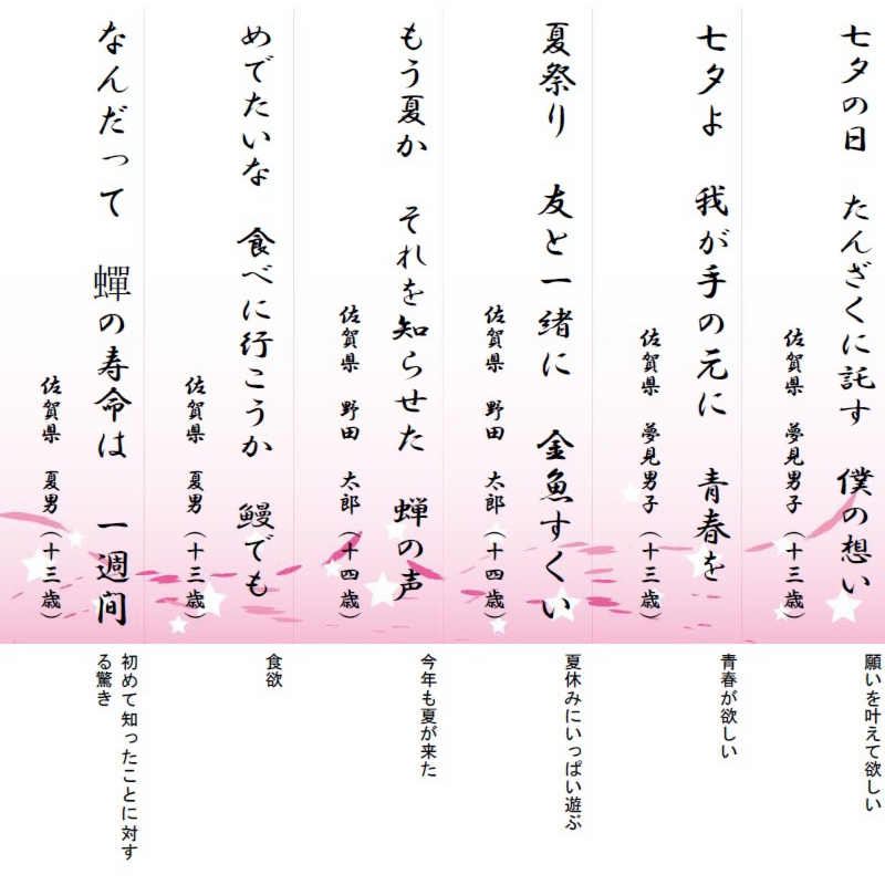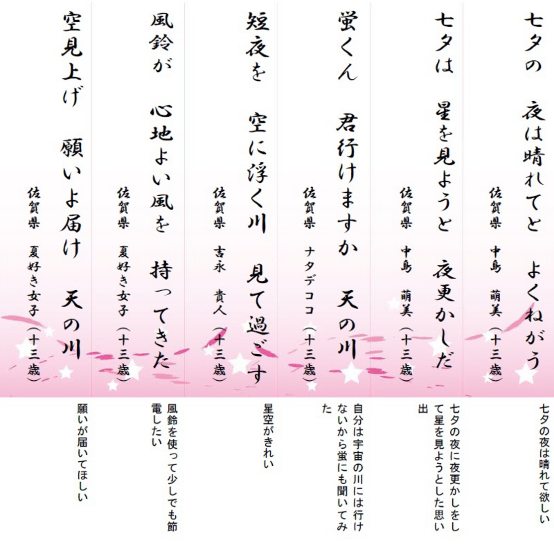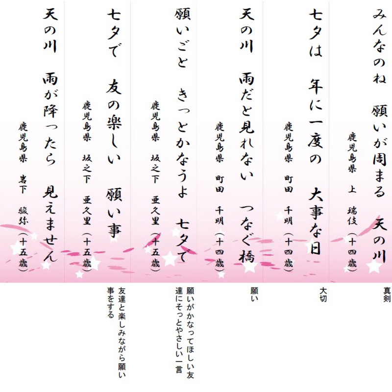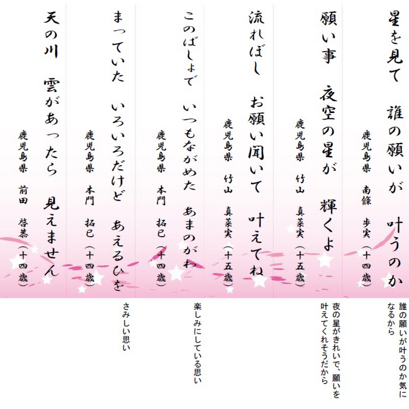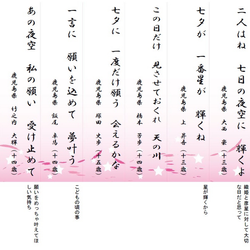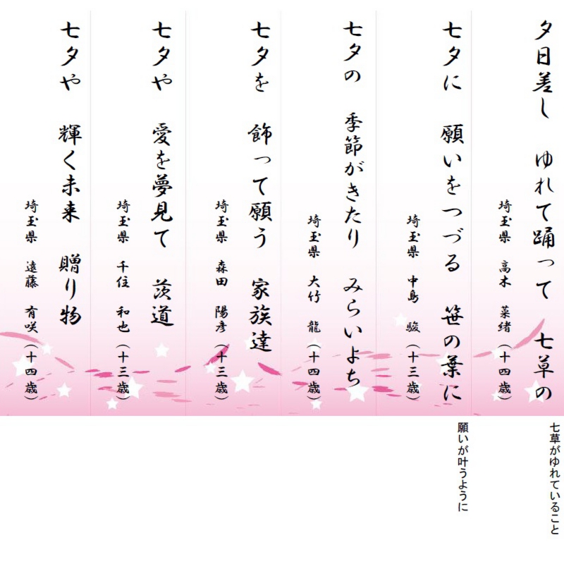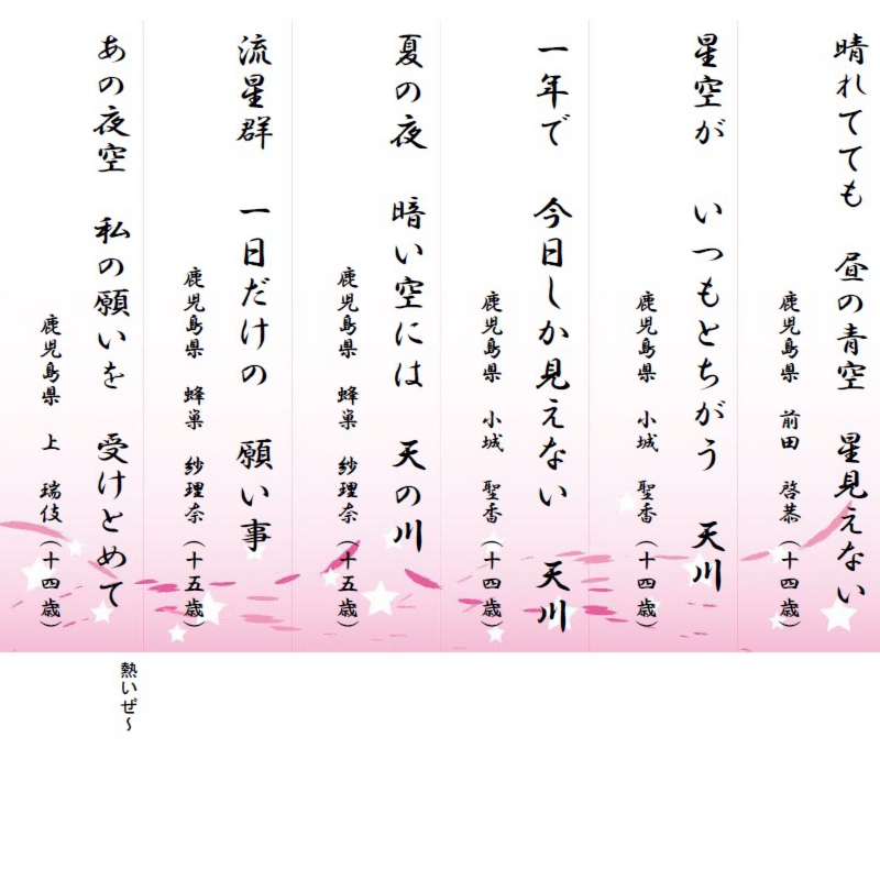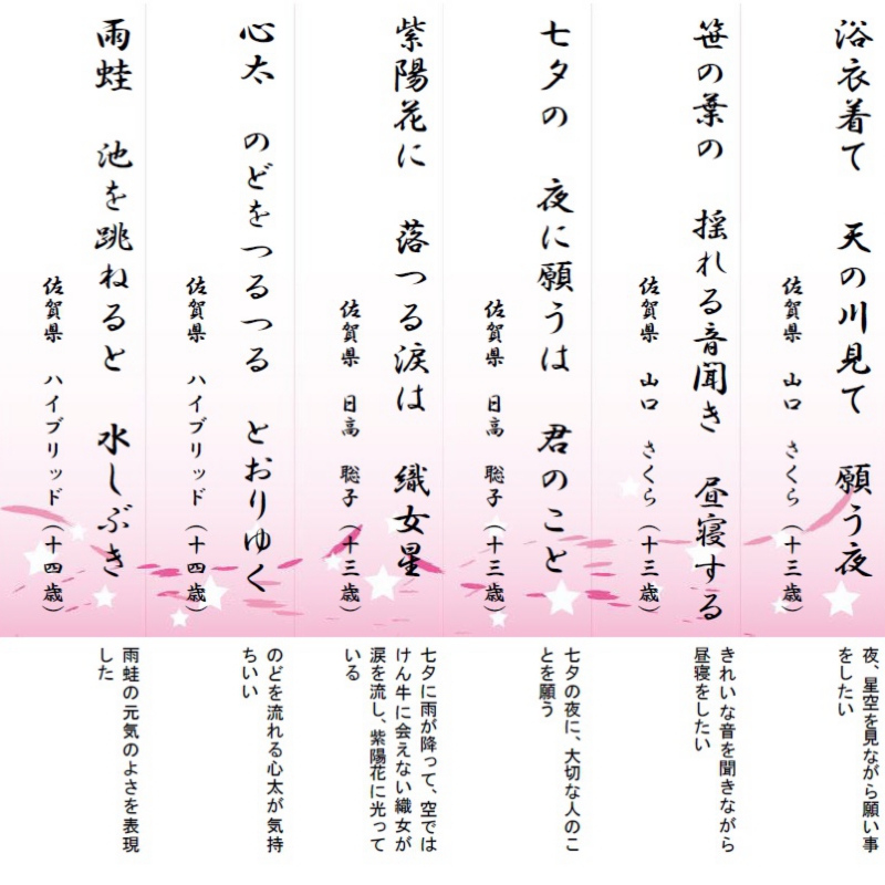 七夕俳句に応募頂いた、俳句をここでご紹介させて頂きます。