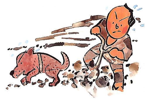 アカにスキをつけると、アカはスキをおさえる彦をしたがえて元気に田の中を行く。田の土はすぐにぜんぶほり返されてしまった。