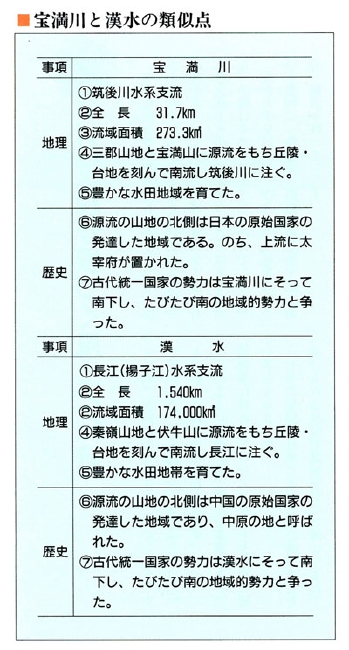 次表では宝満川と漢水の地理的・歴史的類似点の比較です。